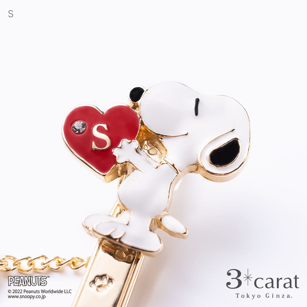 イニシャルが刻まれたハートをスヌーピーが持っているかわいいデザインです。