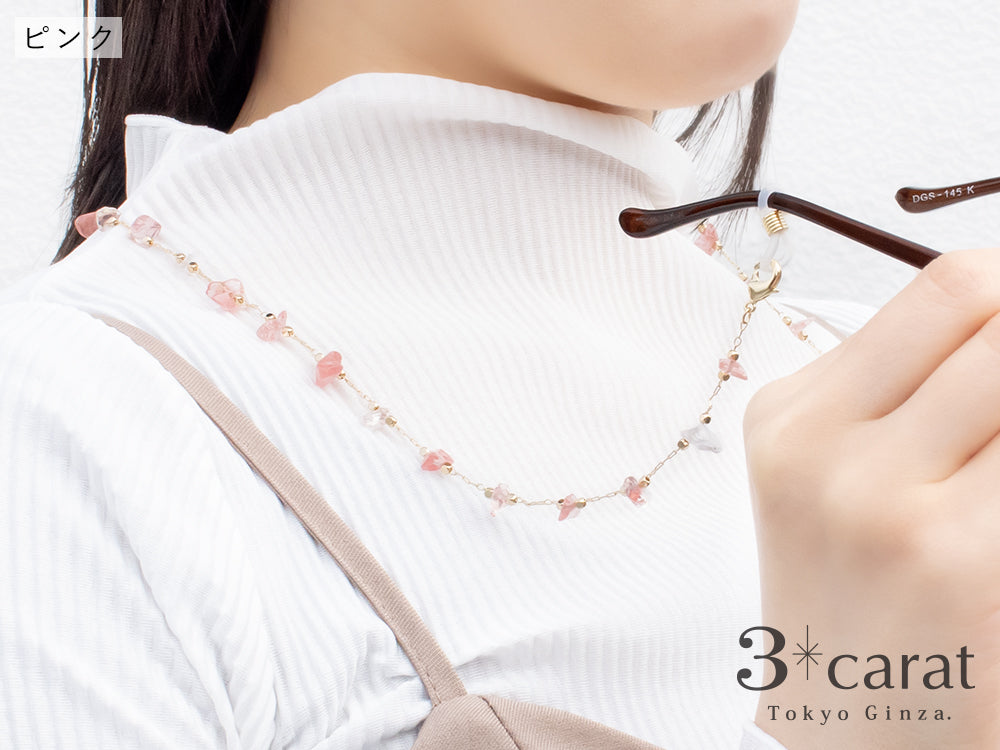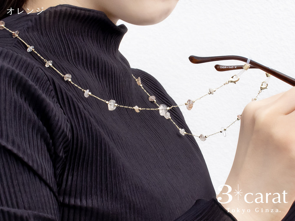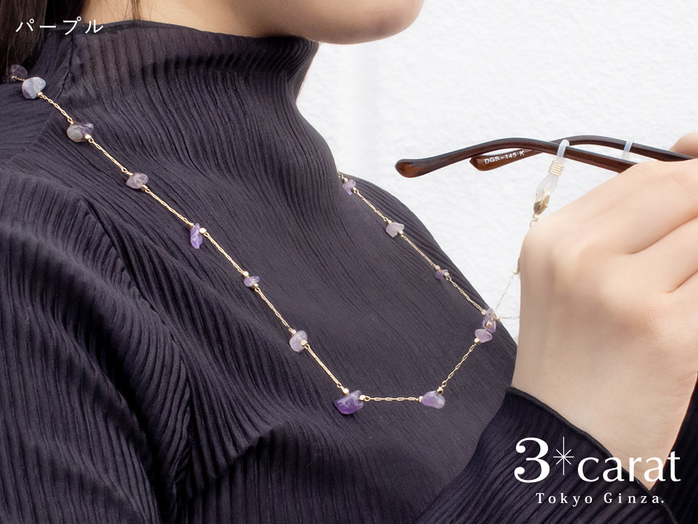 メガネを掛けたままでも、首から下げたり、片方を外して首からぶら下げたりできるので、便利でありながらスタイリッシュなアイテムです。