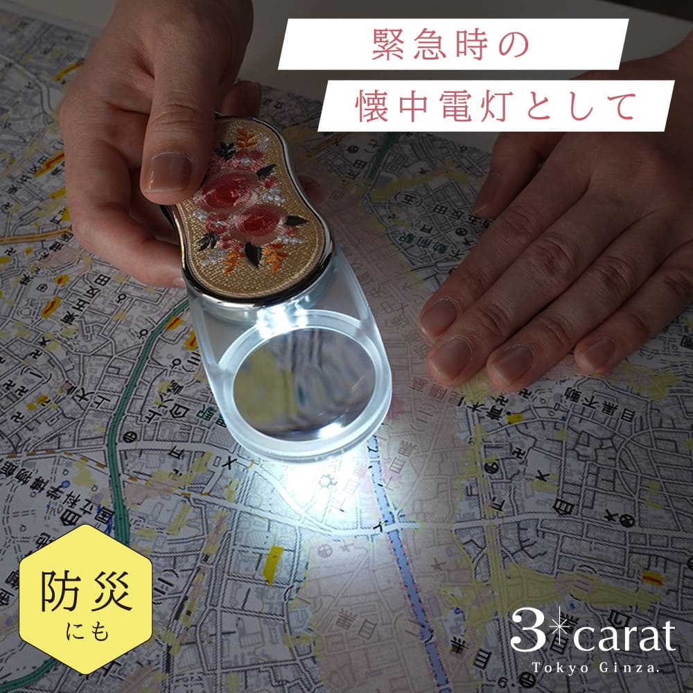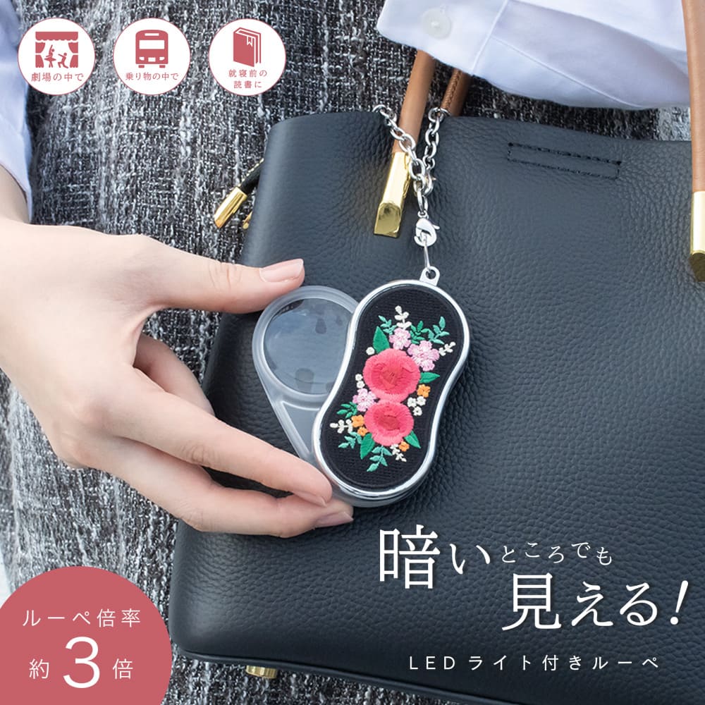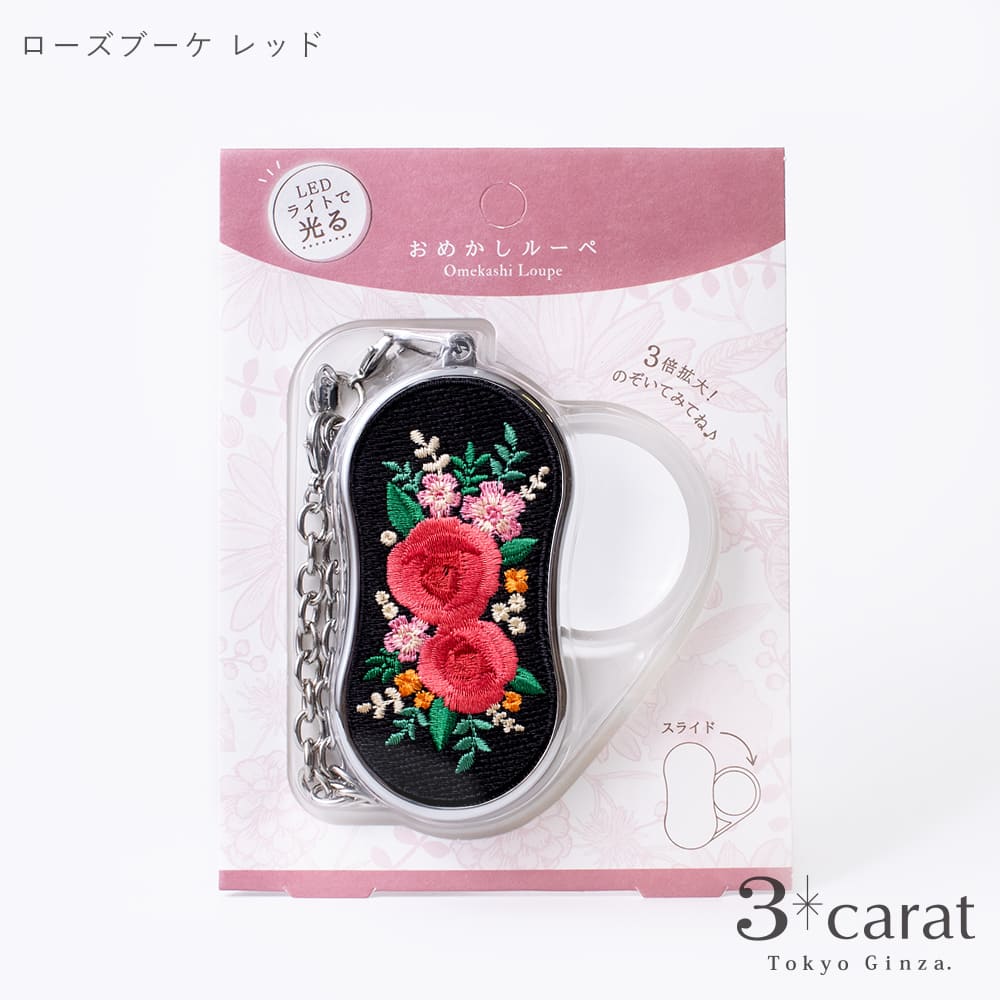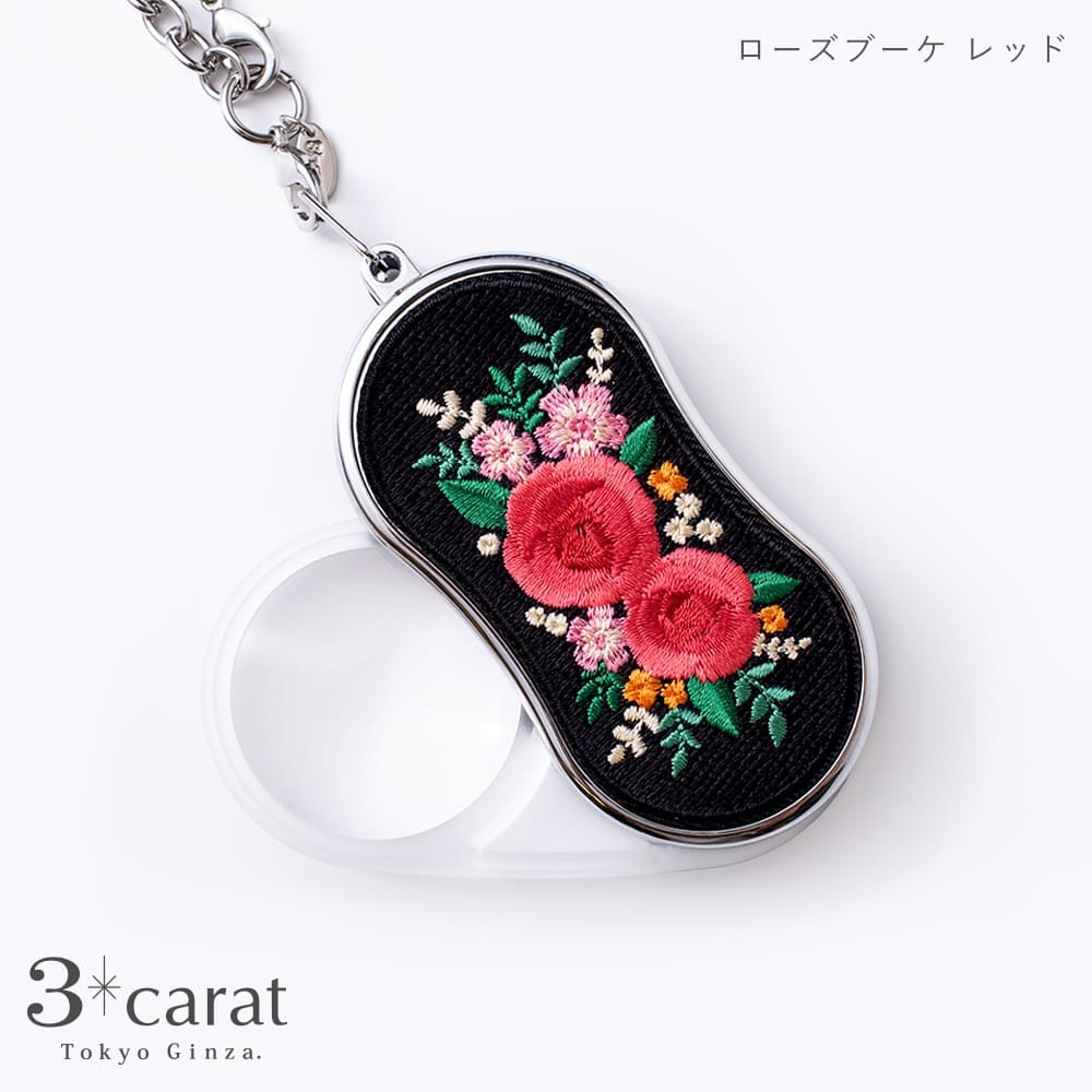 美しい刺繍デザインが施されたこのルーペは、機能性とデザインにもこだわったギフトにもおすすめの商品です。