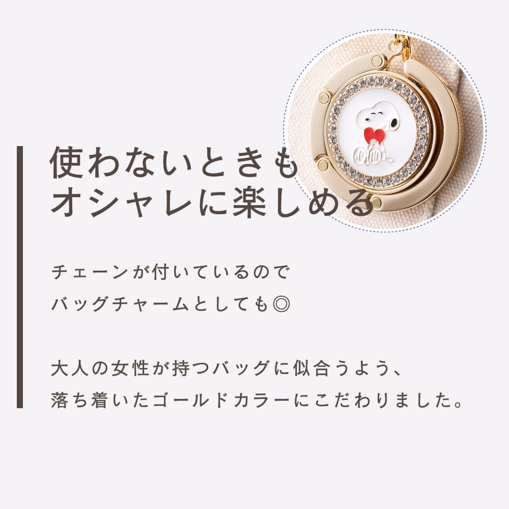 PEANUTSの可愛い世界観そのままのバッグハンガーです。