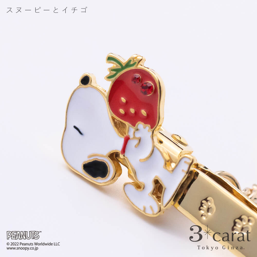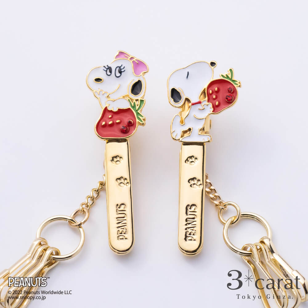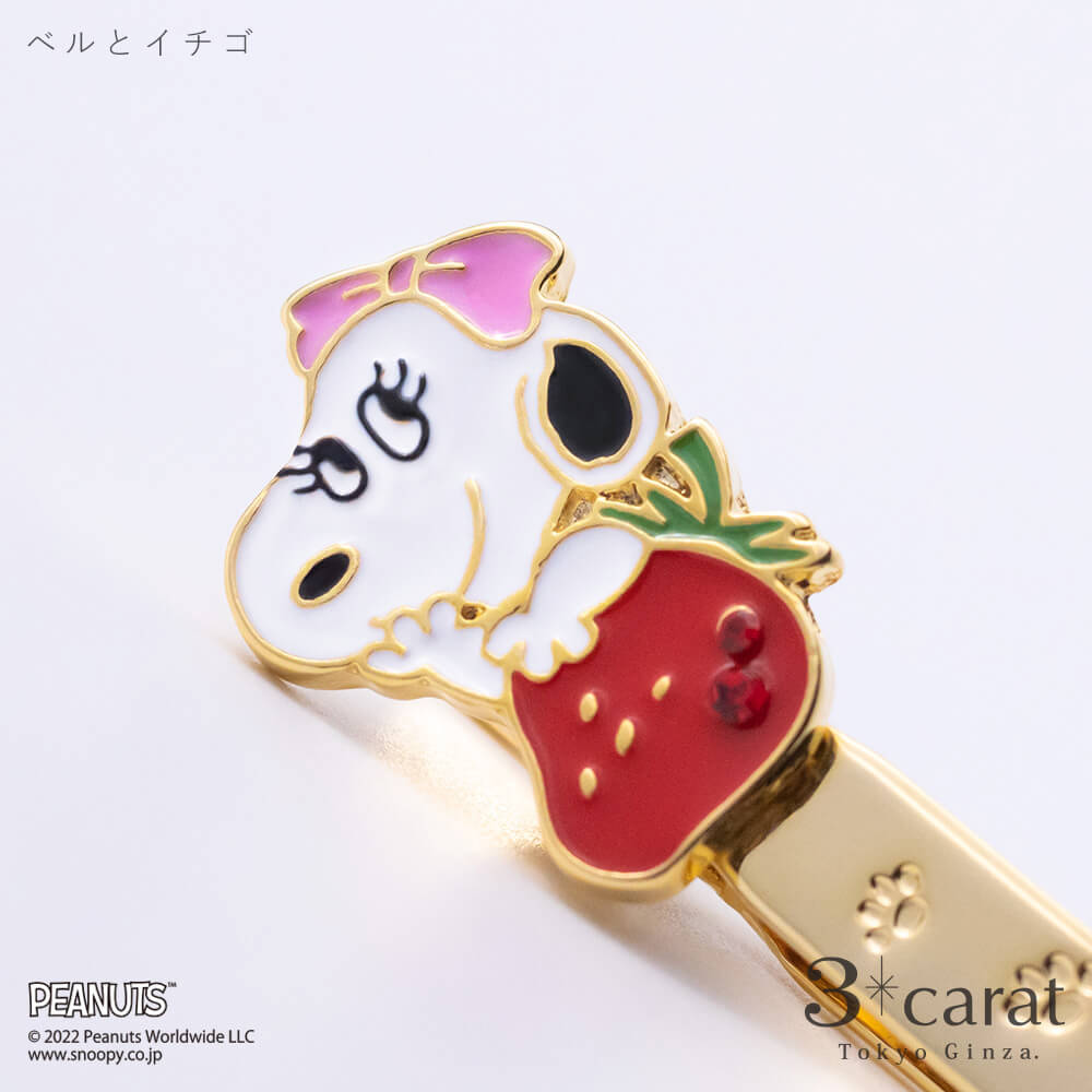 苺を持ったスヌーピーとベルをモチーフにしたキュートなデザインです。